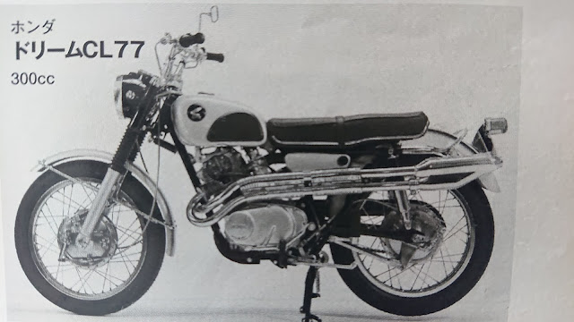 上の画像、T-PADDOCK630のCL77“カリフォルニア風仕様”に先日、お客様がいらっしゃいました。このCLのベースは1966年、ホンダがアメリカ向けにCL72の247ccを305㏄にボアアップしたCL77の国内仕様です。
