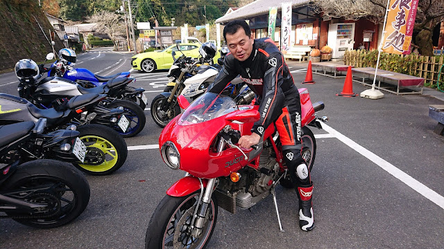 なんとDucati MHe!うしろで父親の三重支局長は「暴れるなよ!」と、後ろからサポート!