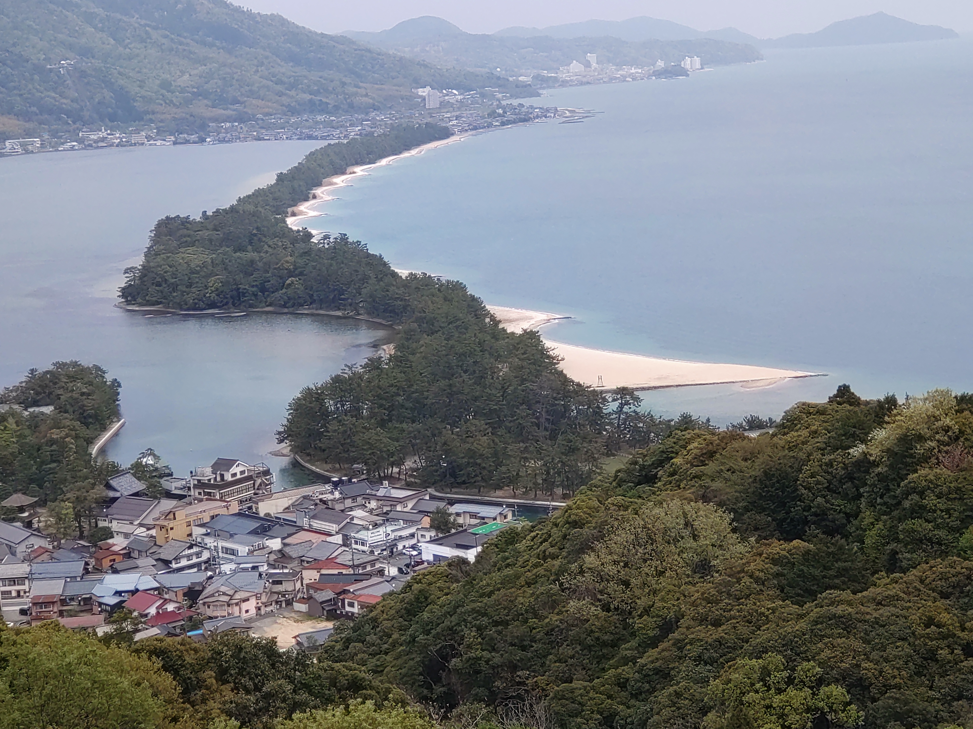 展望台から眺めたところだが、この天橋立には自身は高校生の頃、バイクで来た記憶がぼんやり思い出されたが50年以上前のことで誰と来たかも全く思い出させないでいた案内板には「海軍思想普及のため海軍大臣が下付された」とあった